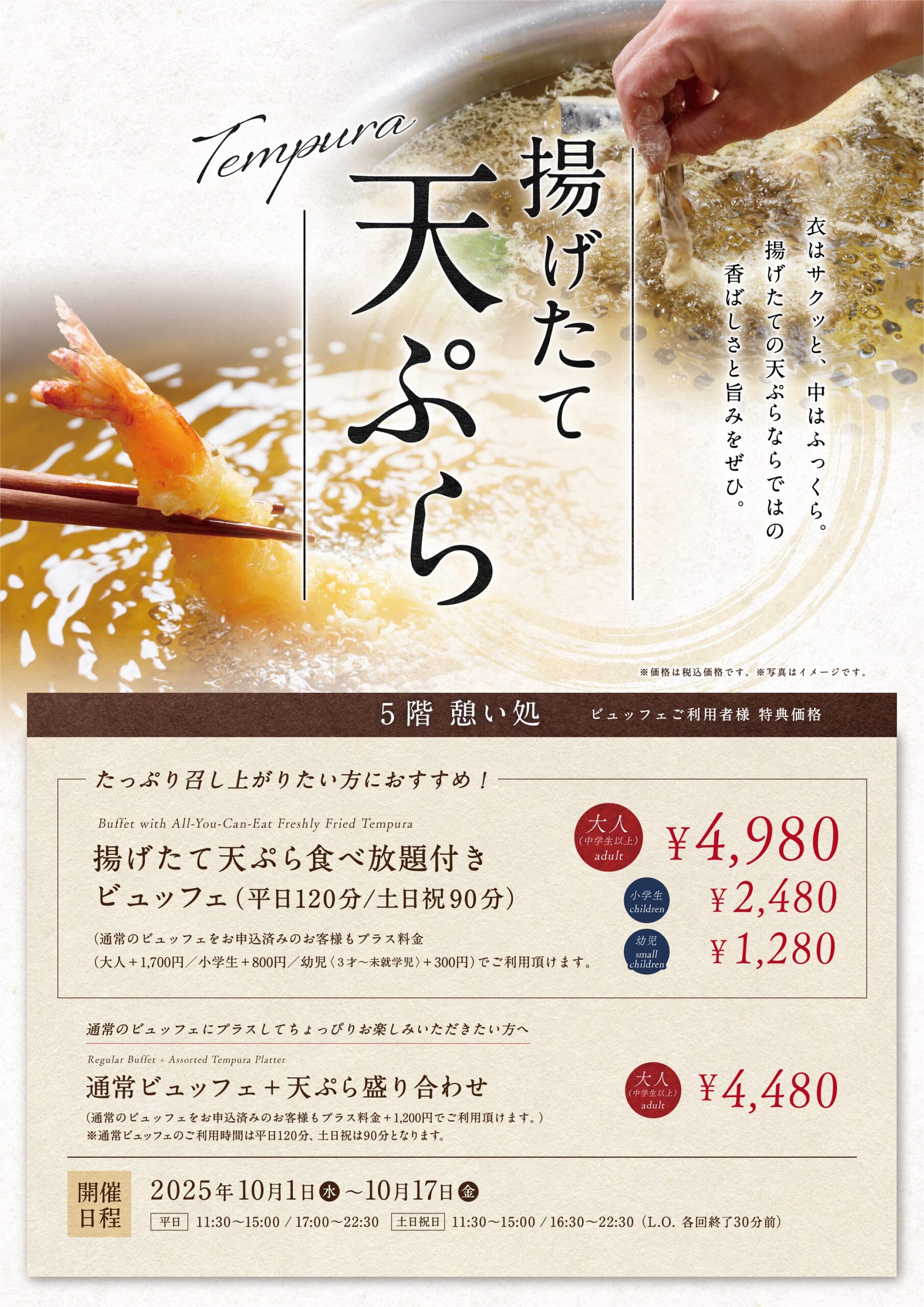 2025年10月1日(水)~10月17日(金)揚げたて天麩羅食べ放題ビュッフェを開催いたします。