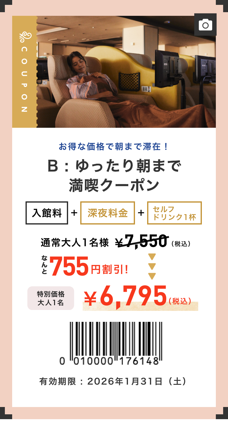 ※入館時フロントにて本クーポン画面をご提示下さい。