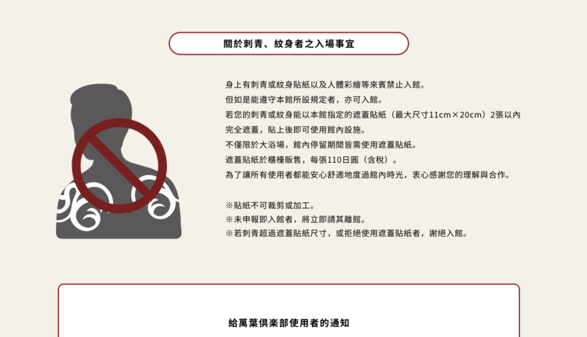 ※禁止有紋身或貼有紋身貼紙以及人體彩繪的人士入館。