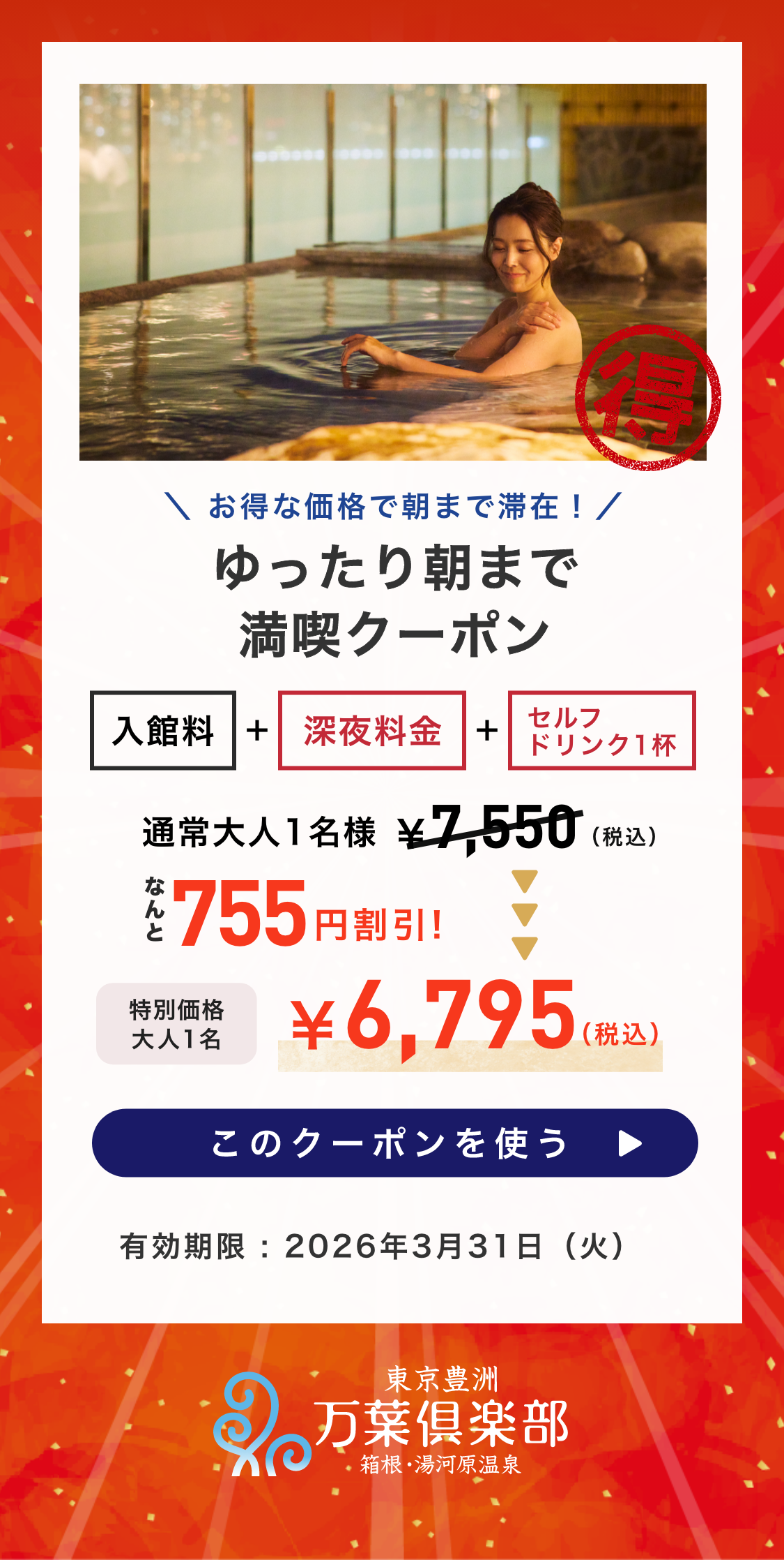 ※大人お一人様入湯税別途150円が必要になります(12歳未満